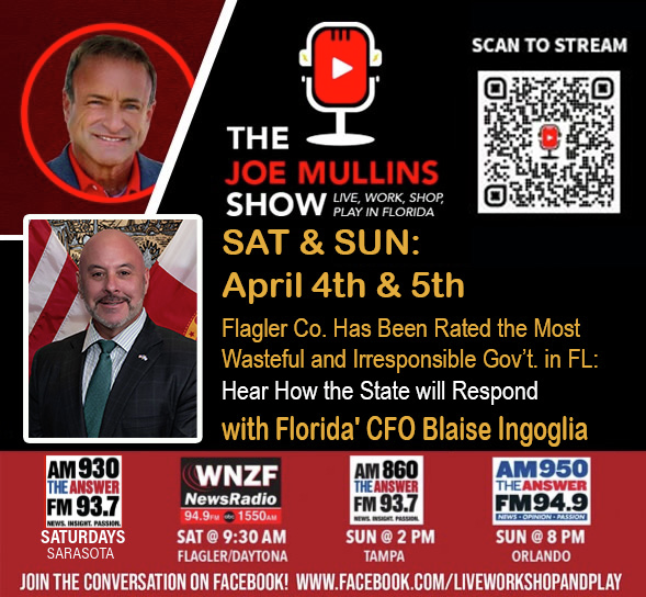 The Joe Mullins Show - Flagler County has been rated the most wasteful and irresponsible government in Florida! Hear how the state will respond with Florida' CFO Blaise Ingoglia.