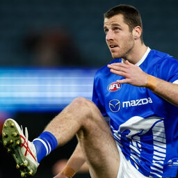 Surf ski paddler escapes uninjured after being knocked into the water