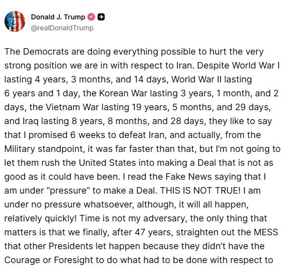 "THIS IS NOT TRUE!" Donald Trump denies being under pressure to strike deal with Iran