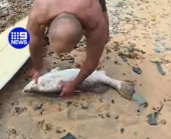 Mackay surfers catch barramundi with their bare hands