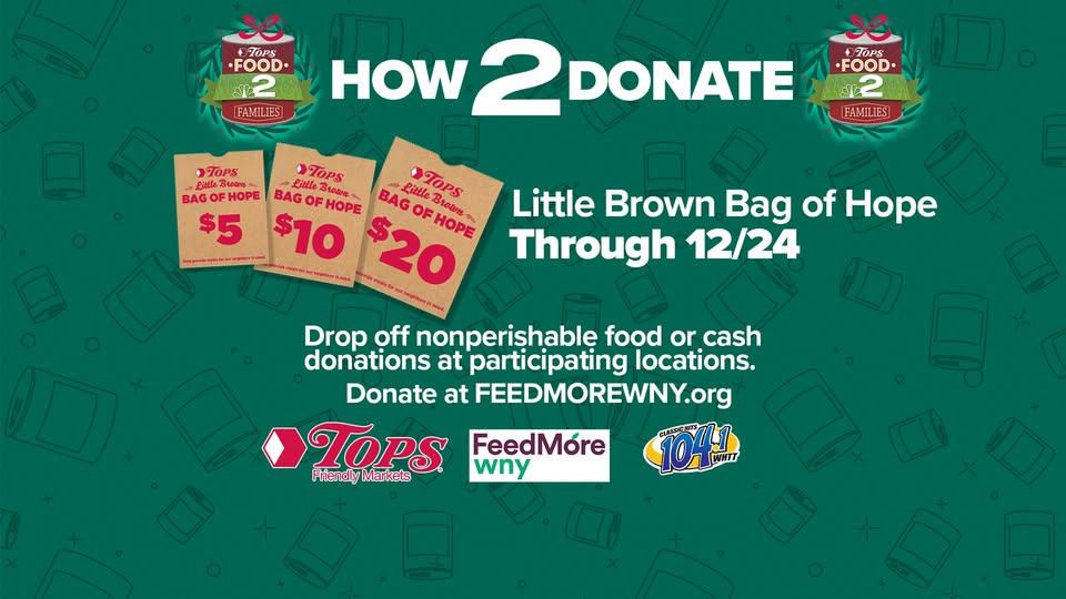 We're thrilled to be a media sponsor of this year's Food2Families campaign to benefit FeedMore WNY. Learn more about the program and just how many Western New Yorkers are facing food insecurity this year. Thank you to Tops Friendly Markets for their 21st year of support!