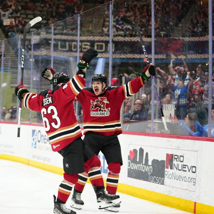 D.K. on the Sports Tip 5 p.m. hour (4-18-24): it will not be easy as it appears for Coyotes owner Alex Meruelo to move the Roadrunners out of Tucson and drop them to replace the NHL at the Mullett Arena in Tempe (Photo courtesy: Tucson Roadrunners).