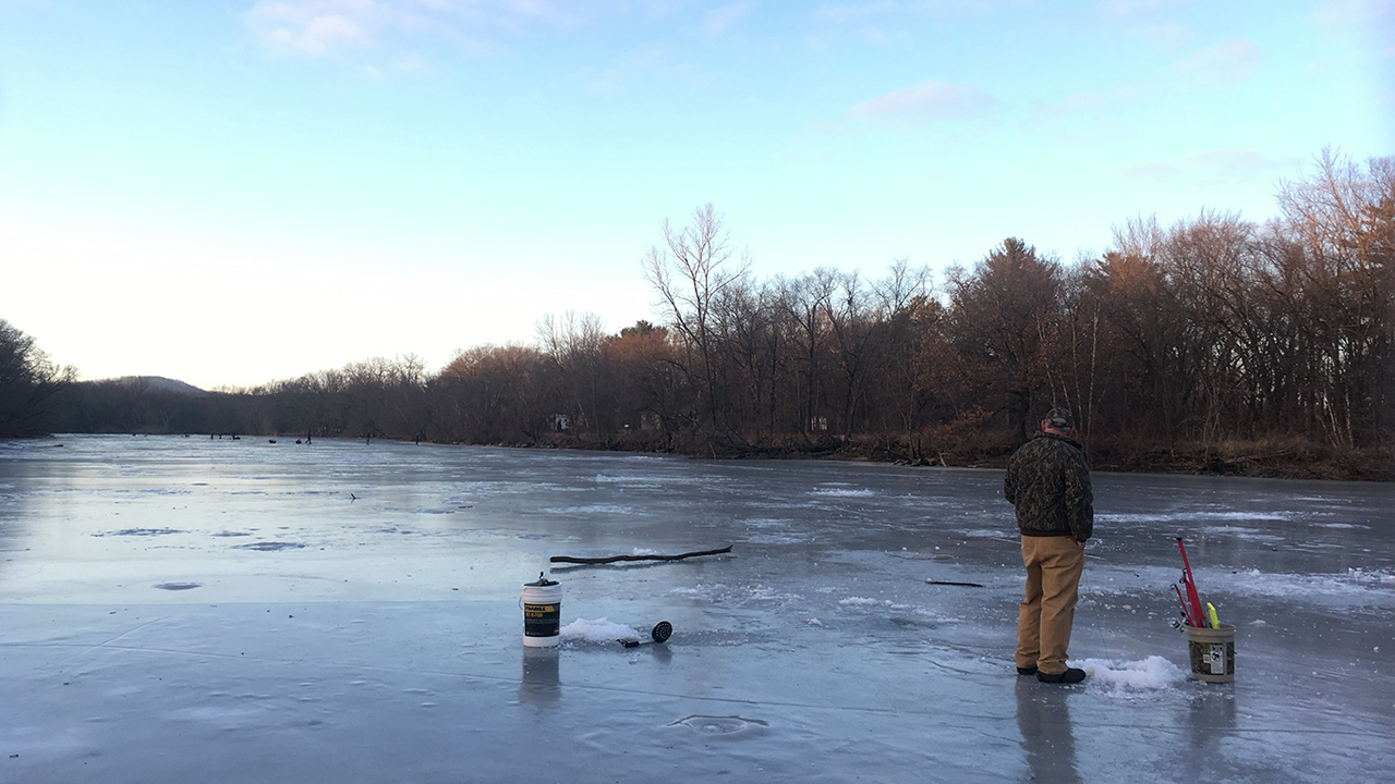 Ice fishing with Alex Welter of River Bent Outfitters