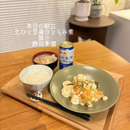 ~本日の献立~ ・えびと豆腐のとろみ煮 ・豚汁 ・静岡麦酒 ~本日の雑談~ ・今更掃除を頑張ってる話