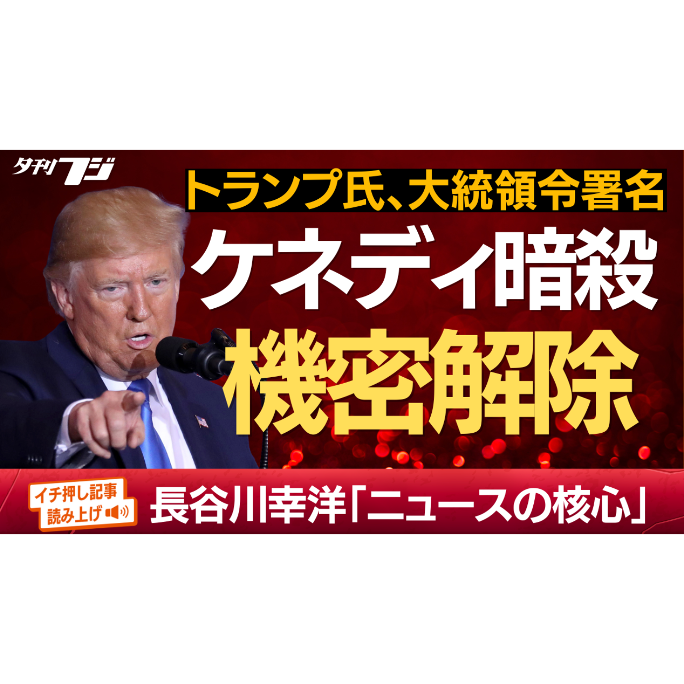 「夕刊フジ」(産経新聞社発行)は1月31日をもって休刊します。特別保存版「さらば、オレンジ色のニクい奴」を緊急発売。詳しくはこちら(リンク) アメリカのドナルド・トランプ大統領は23日、1963年の「ジョン・F・ケネディ大統領暗殺」に関する文書の機密指定を解除し、国民に公開する大統領令に署名しました。機密解除の理由は何か。ジャーナリストの長谷川幸洋氏は、トランプ氏が公約に掲げる「ディープ・ステート(影の国家)退治」との関係について考察します。 ■関連記事はWebで(リンク) ■「夕刊フジ編集局」は産経新聞社発行の「夕刊フジ」発のポッドキャスト。国内外のニュースの背景や裏側を、短い記事で…