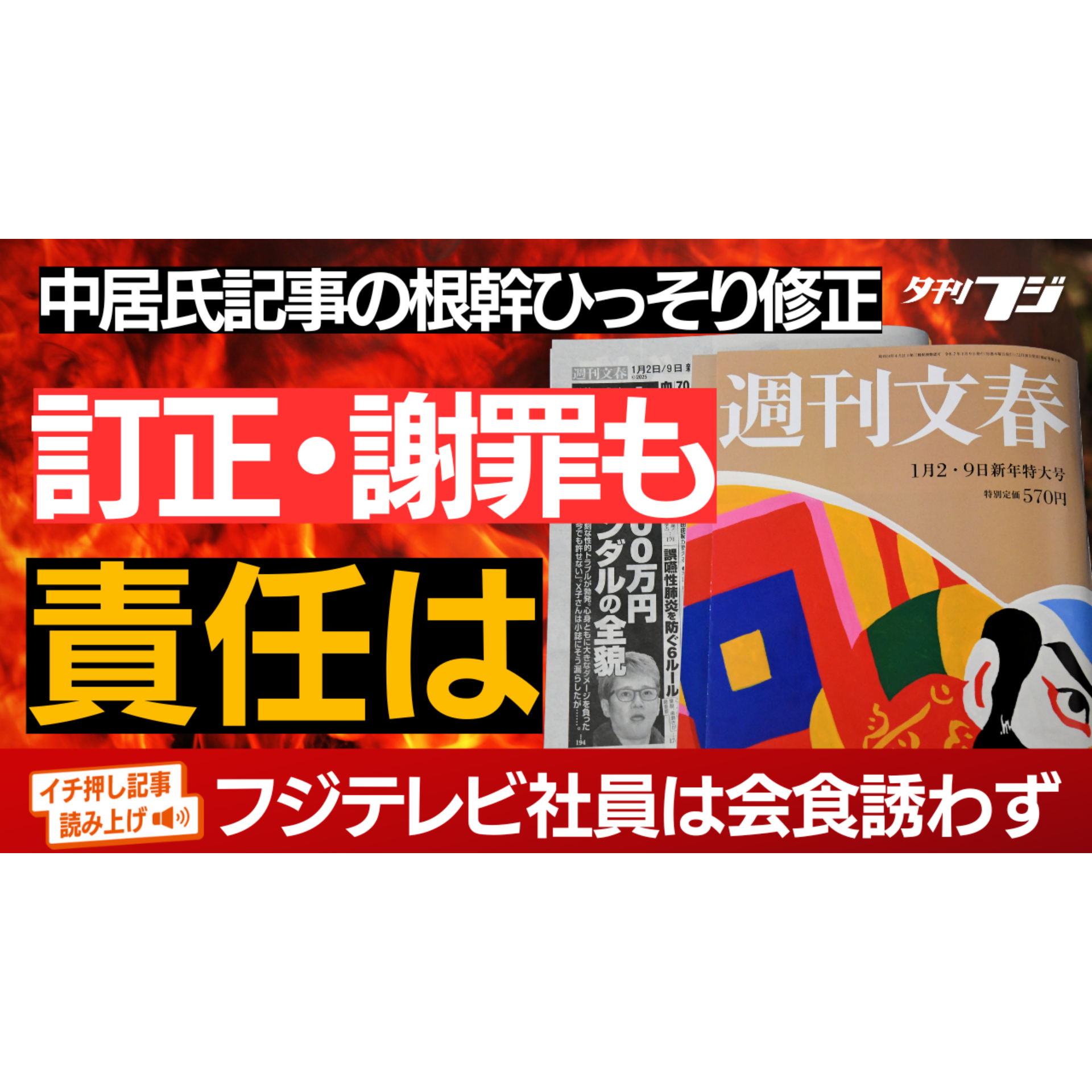週刊文春、訂正・謝罪も責任は 中居正広氏記事の根幹部分ひっそり修正