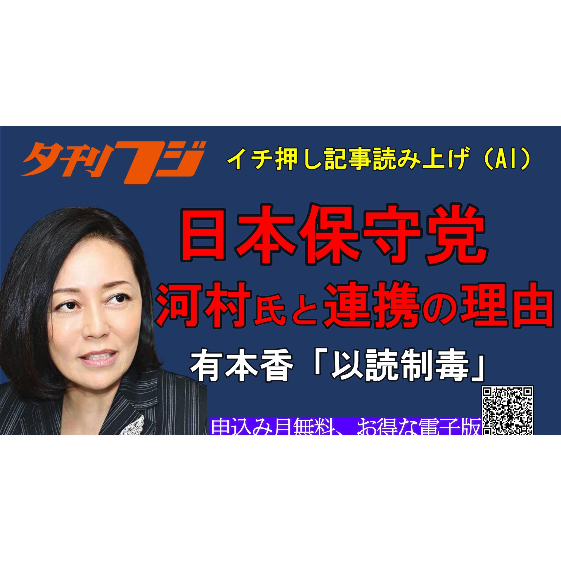 日本保守党が河村氏と連携する理由、有本香「以読制毒」